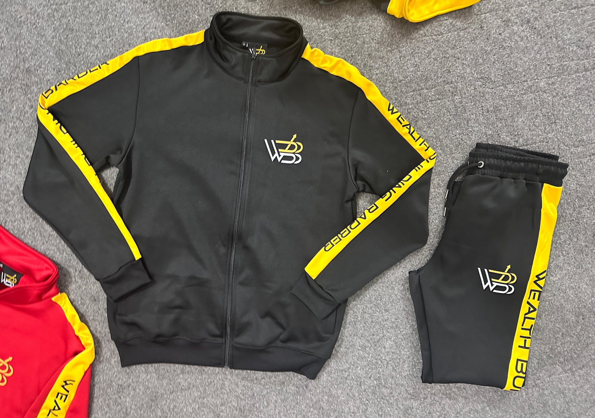 Subtle “WB” monogram on chest and pant leg in gold foil—an emblem of your wealth‑building mindset. -
